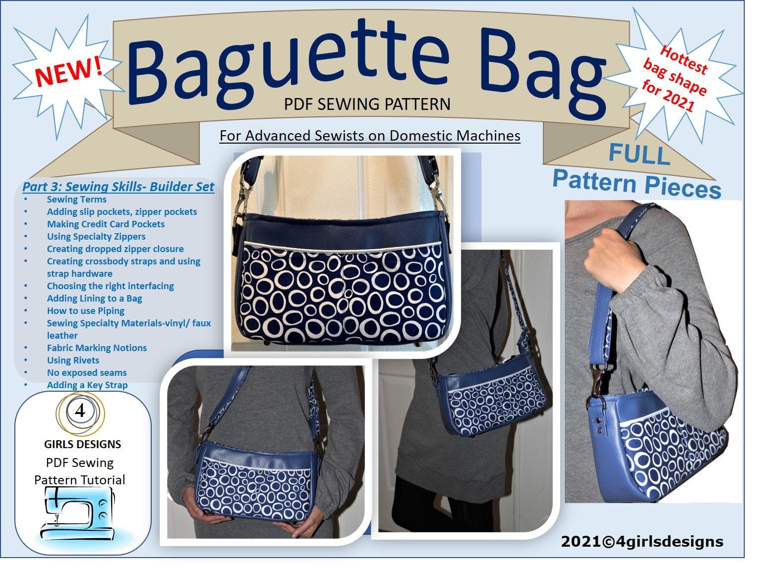 Instant Download Betty Baguette Bag PDF Sewing Pattern with Full Tutorial, Baguette Bag, Handmade Sewing. Video Available. Original Pattern