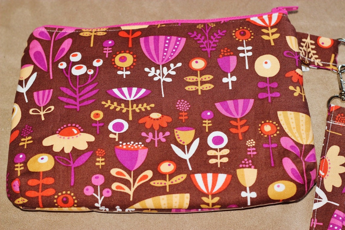 I needed a wristlet that I could access my iPhone from without removing it from the bag so I created this bag with a clear vinyl pocket large enough for most smartphones. I can even use it with an Otterbox case on mine. I love being able to see my text messages and answering them quickly without removing the phone from my bag. I can also see who is calling me before deciding if I want to take the call right then. I hope this is something you can use as well. This would be a great gift for Mother's Day, Easter, Graduation, Birthdays, etc. It uses a small amount of cloth but delivers a useful item that can easily be personalized by choosing just the right fabric.