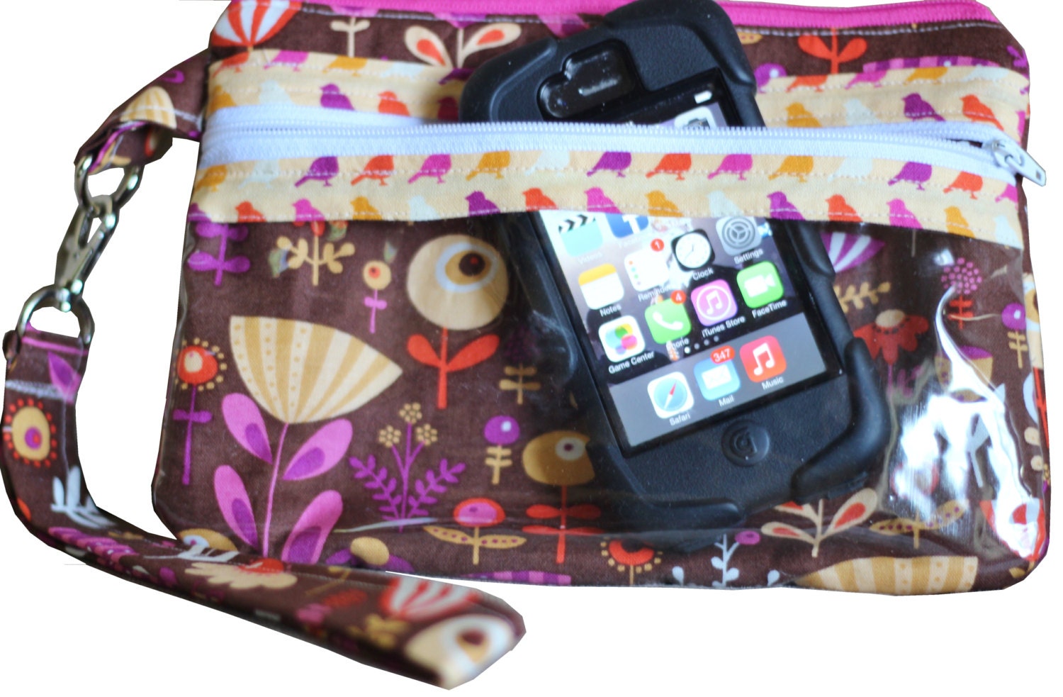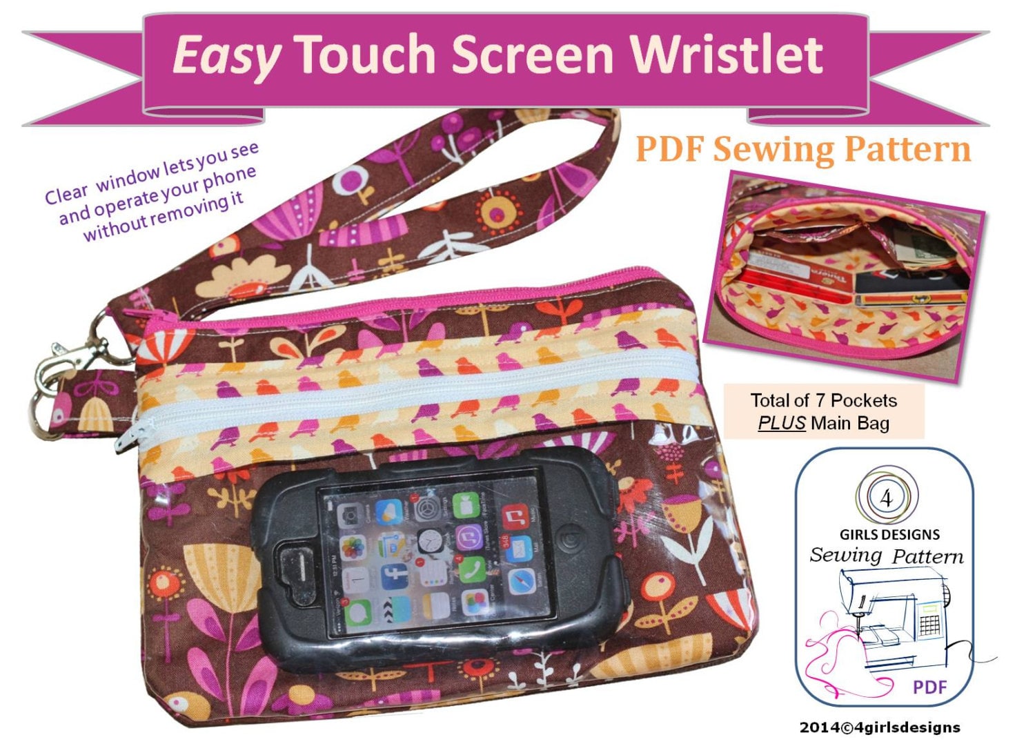 Instant Download PDF Sewing Pattern: Easy Touch Screen Wristlet -Use your phone without taking it out or as an ITA bag to show off pins, etc
