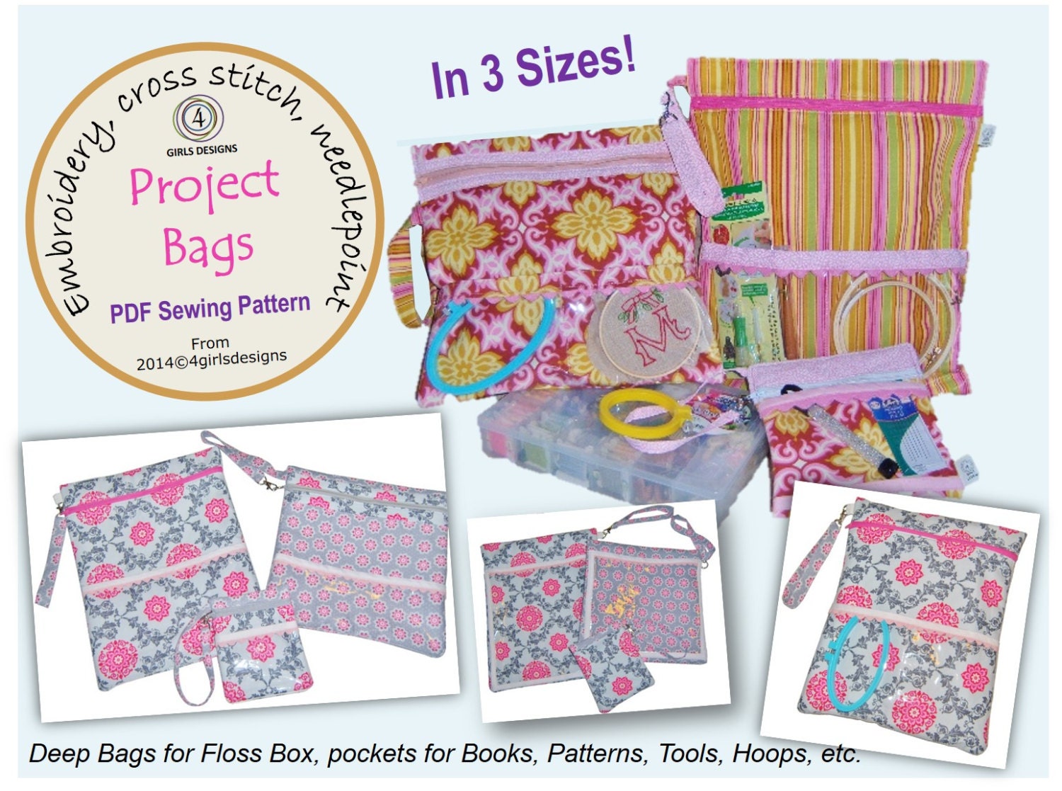 INSTANT DOWNLOAD PDF Sewing Pattern: Needlework, Cross Stitch, Punch Needle, Embroidery Project Organizer Bags, 3 Sizes DiY Gift for Crafter