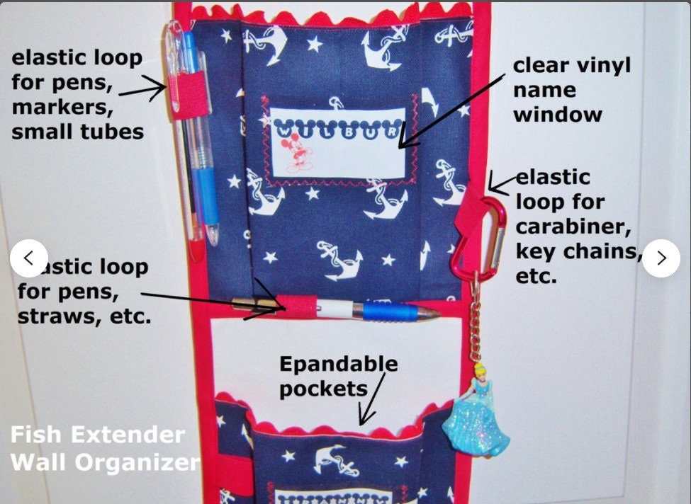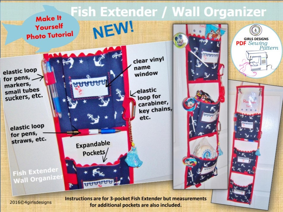 Why is this Fish Extender better than many of those out there that you can buy? I have added simple loops, deep pockets that also expand, allowed more space between the pockets --all designed to hold more stuff! These elastic loops are perfect for holding pens, tubes, lollipops, and even a carabineer that will hold all the key chains, or mug handles, leaving more space inside the pockets! All the pockets are interfaced for strength and durability. It is flexible so it will be easy to pack. The pattern is available for instant download following payment so you can buy it now and start it now. You can afford to make them specific to your cruise for special holidays, a wedding, a birthday, etc.