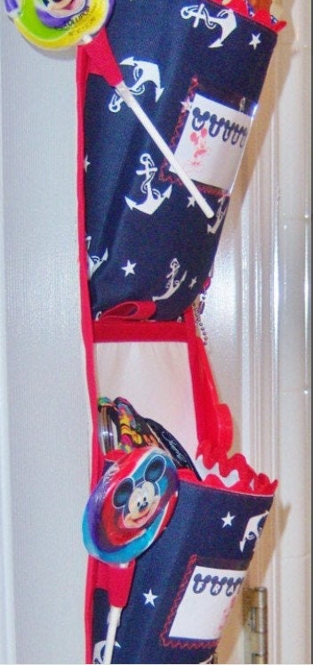 You can purchase Fish Extenders from other sellers here on Etsy, but I wanted to provide a sewing pattern for one for those who like to make their own things. I do not have a fancy embroidery machine, most of us don't, but most of us can figure out how to print out a customized set of names to slip in the clear pockets on the Fish Extender. You can choose fabric that coordinates, or different fabrics that represent each person. You will find dozens of different popular character fabrics out there. I chose a nautical print for mine because I also want to use them as a wall organizer after my cruise.