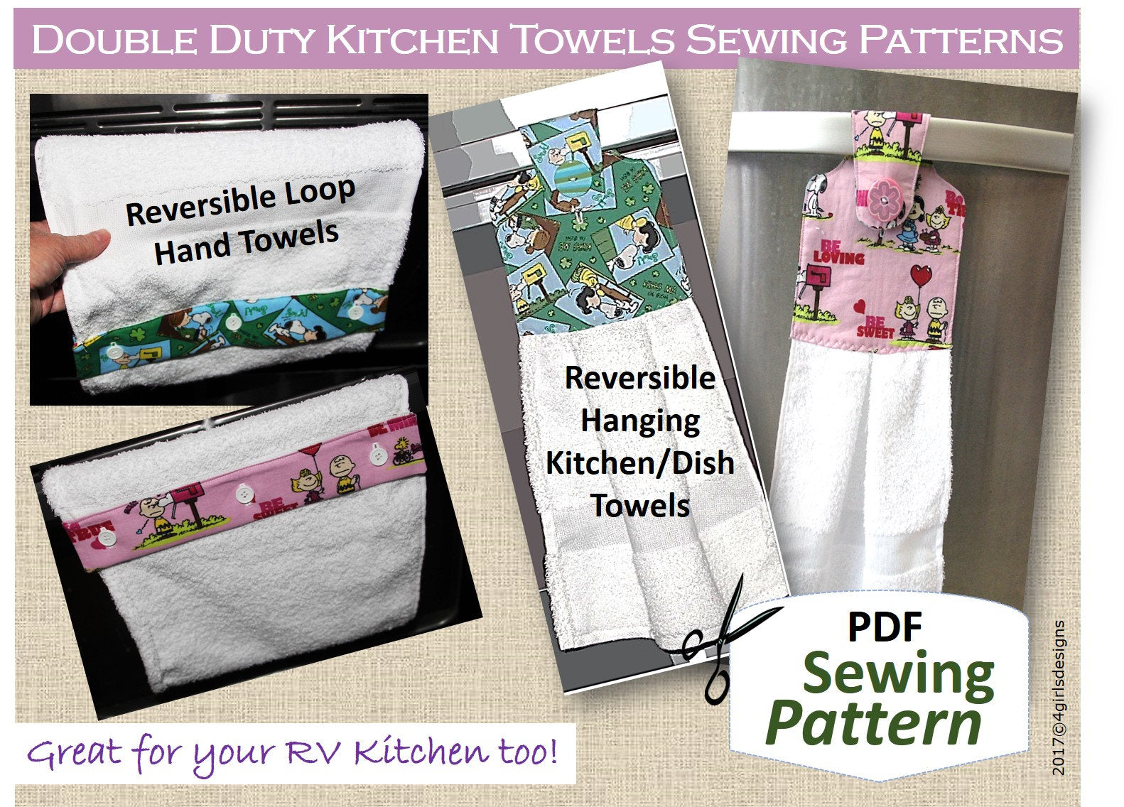 NEW Double Duty Kitchen Towels PDF Sewing Pattern. Reversible. Hanging Towel. Continuous Loop Towel. DIY Hostess Gifts. Holiday Decor